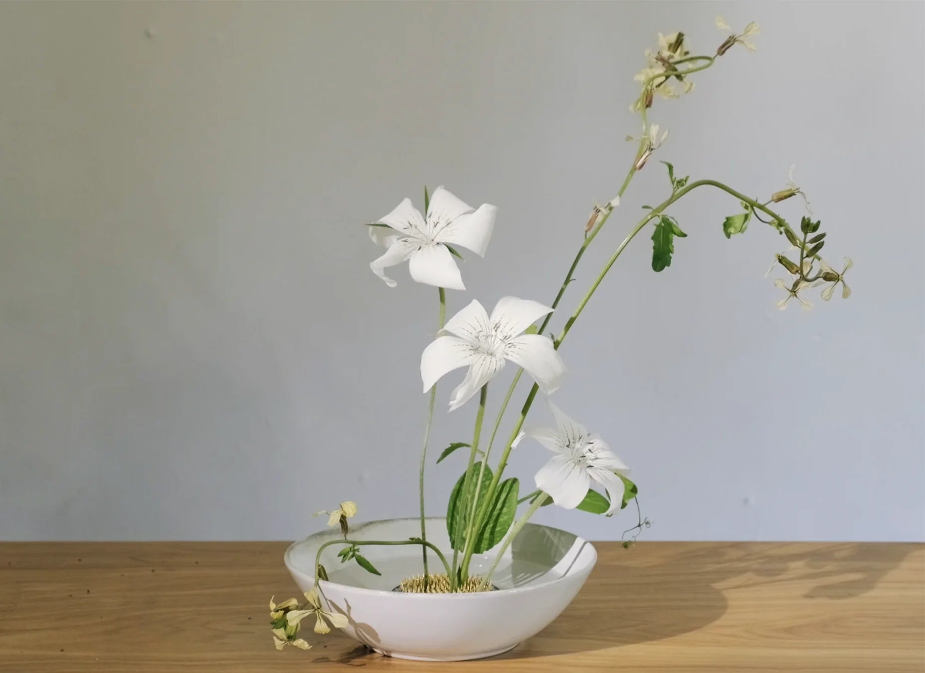 At our shop, we carry Kenzan that come in medium and large round plates that are perfect for thicker stemmed and woody arrangements, as well as a Mini Kenzan Set that comes with square and circular plates for smaller arrangements with thinner stipes. Try this fun activity at home by yourself or with your friends and family to discover a new way to bring flowers alive into your space!